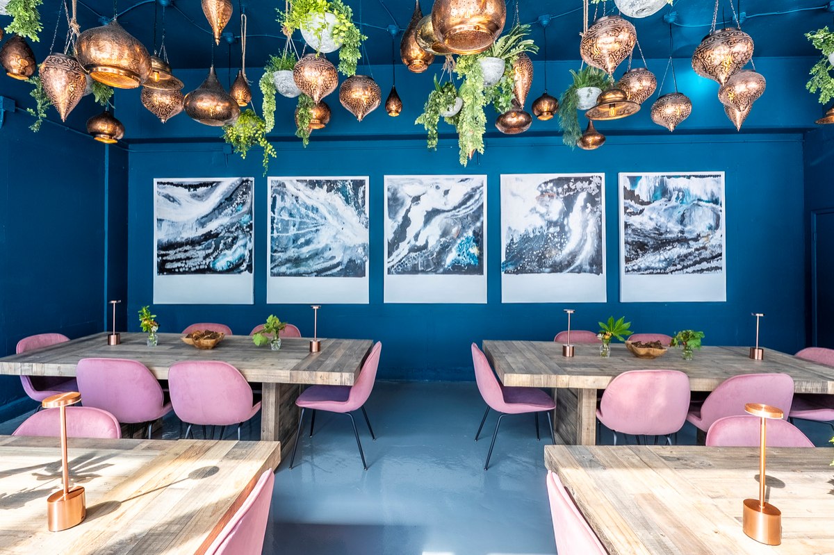 The menu rotates and takes inspiration from Californian and Mediterannean flavors, and courses arrive in shared platters that encourage guests to connect. The setting feels part supper club, part salon: soft lighting, open kitchen, no formal separation between host and diner.