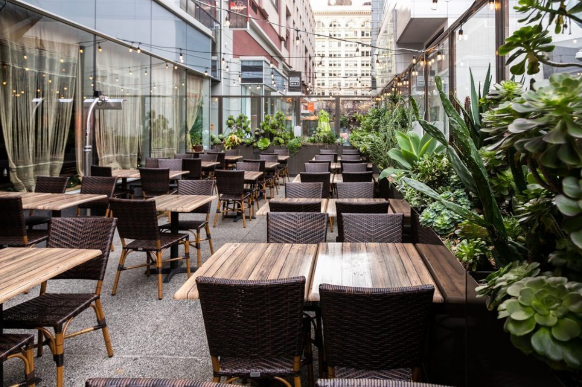 Tropisueno flips from a taqueria by day to a full-service restaurant and tequila bar at night, giving planners two distinct event setups in one downtown address. The space supports seated dinners for up to 70 guests or cocktail-style gatherings for 175, with indoor tables and a compact patio that opens onto Yerba Buena Lane.