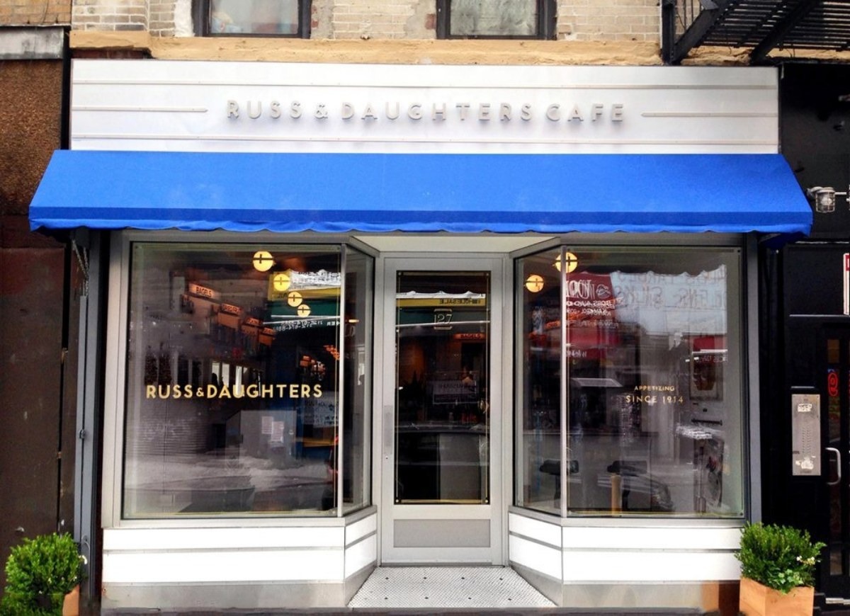 Russ & Daughters Cafe opened in 2014 on the 100th anniversary of the original Russ & Daughters shop, turning a century-old tradition into a sit-down room with fixed booth seating.