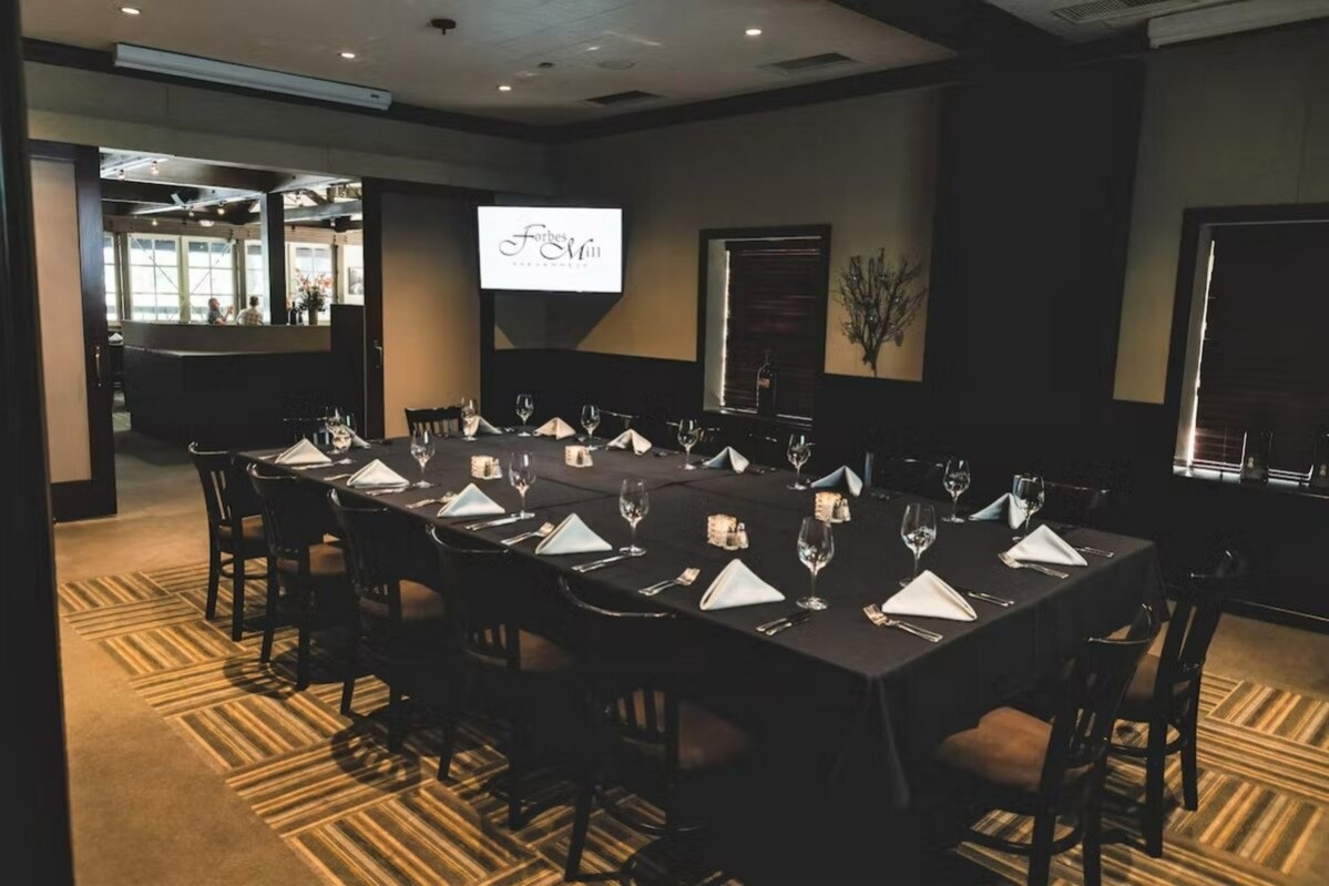 Forbes Mill Steakhouse brings understated luxury to the Sycamore Valley area, close to the Danville Livery. Inside, the Sycamore Room offers a private, polished space for business dinners or celebrations, complete with privacy glass doors, climate control, and an 82-inch screen for presentations or slide shows.