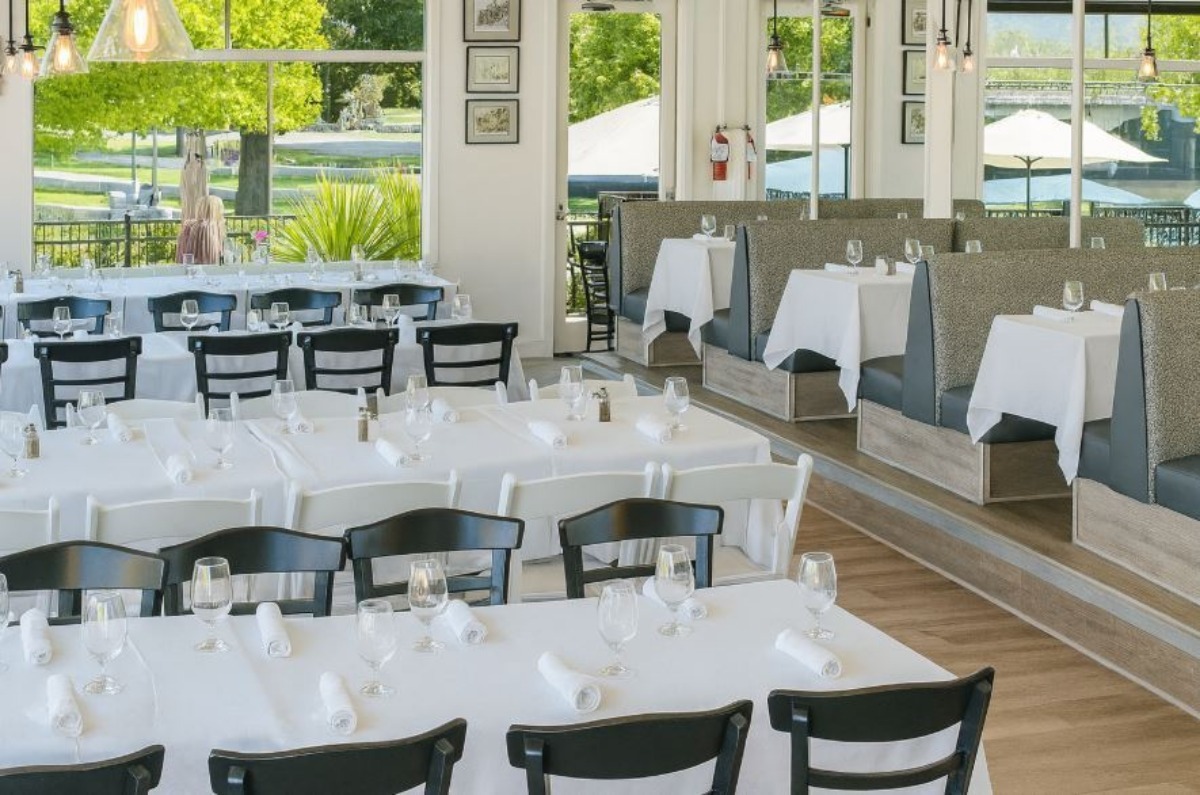 The interior is bright and modern, with simple furnishings and an uncluttered aesthetic. And if you’d like to enjoy some fresh air, there are two outdoor spaces: the River Dining Area, offering relaxed river views, and the Heated Patio, a cozy year-round spot perfect for casual gatherings.