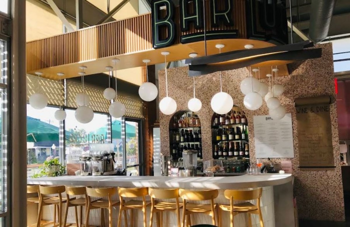 The atmosphere is bright and cozy, with soft tones and sun-filled windows that look out over the market. For private events, Bar Lucia can host small groups indoors or on its patio, offering a charming, elevated yet easygoing space that suits bridal showers, birthday parties, or weekend brunches.