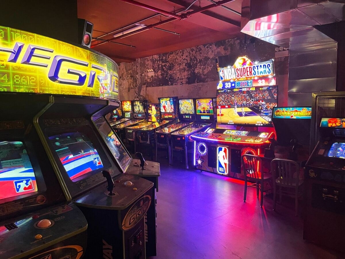 Barcade FiDi combines a bar and restaurant with a large collection of classic arcade games and pinball machines. In addition to its main floor, the venue includes a downstairs private event space that is physically separated from the primary arcade and bar area.