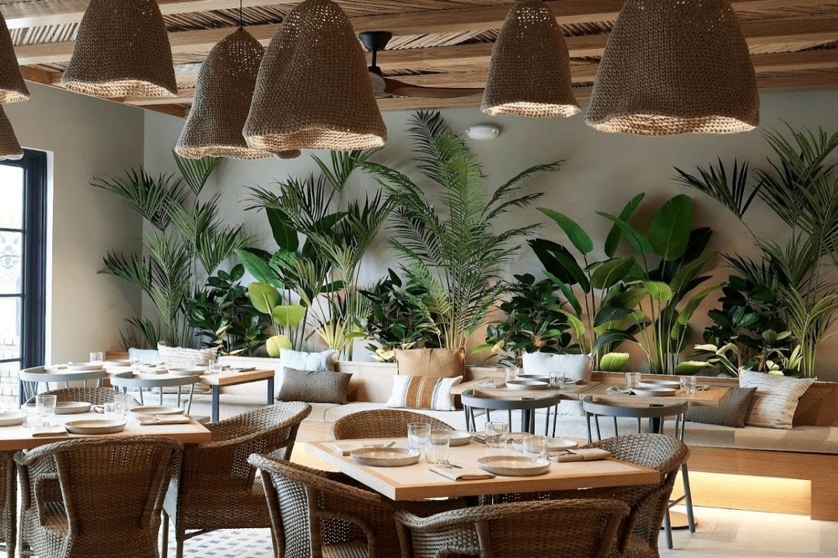 - The Sala Miró offers a lush, semi-private retreat filled with greenery, rattan seating, and art inspired by Catalan masters – a perfect choice for team dinners or weekend celebrations.