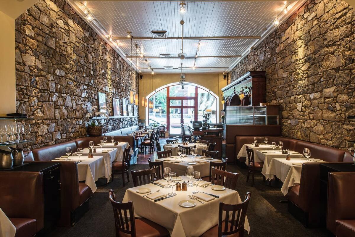 Inside, the space is rustic and warm with stone walls and an old-school bar. Soft, ambient lighting that makes the room feel intimate without being too formal. It works well for everything from birthday dinners to low-key engagement celebrations. Most seating is indoors, but there’s patio space when the weather’s nice.