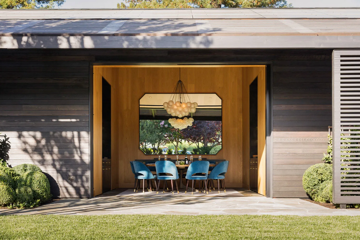 Inside, reclaimed wood accents and sleek furnishings strike a balance between rustic Napa charm and contemporary design.