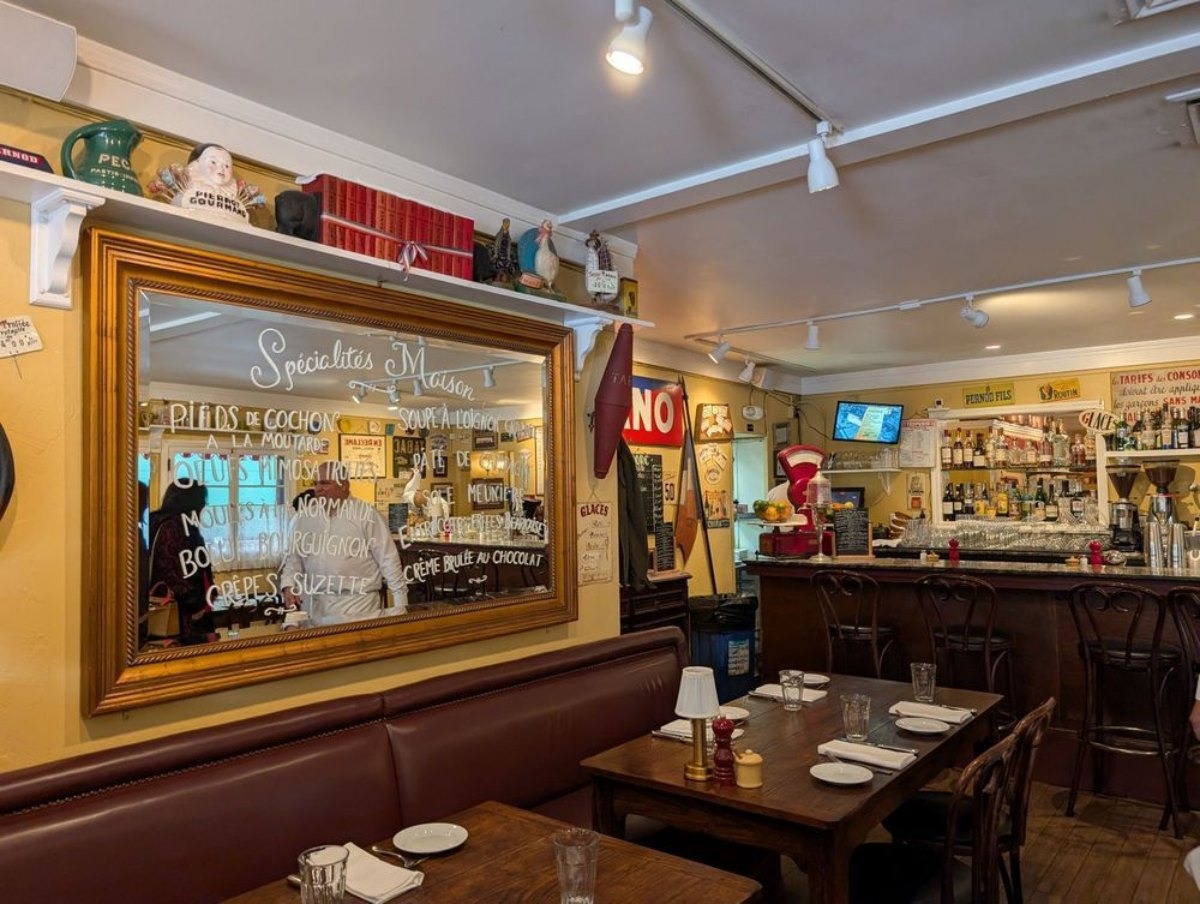 The menu reads like a love letter to France: cassoulet, escargots, coq au vin, and the signature tomato soup in puff pastry. Each dish pairs naturally with a curated wine list featuring French and California selections.